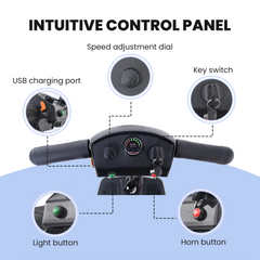 - Adjustable front tiller.