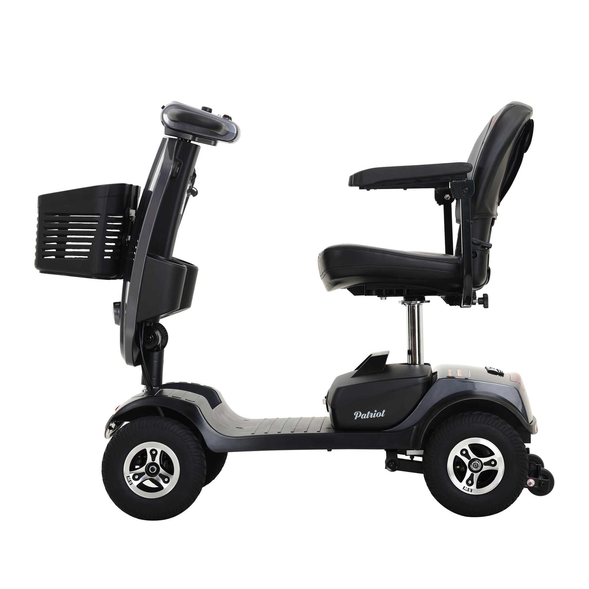 - 9-inch pneumatic tires at the front and rear provide a smooth ride.